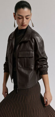 Nappa-Looks und Strickteilen im Mittelpunkt steht und der Kollektion einen zeitgemäßen Twist verleiht.